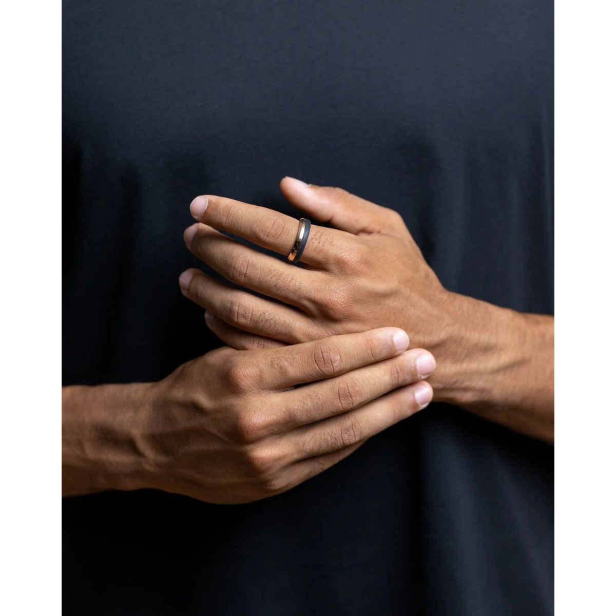 La bague Astrum Gold est réalisée en titane plaqué or grade 2 et finie avec une fine couche de carbone forgé. Les tons noir et doré s'accordent parfaitement et l'intérieur de la bague est doté d'une coupe confortable pour qu'elle soit vraiment agréable à porter. Cette bague Astrum mesure 6 mm de largeur.