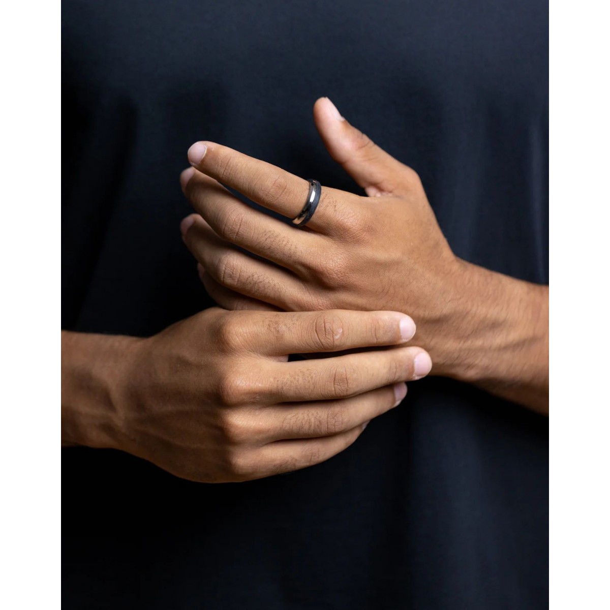 La bague Astrum Silver est fabriquée en titane grade 2 et finie avec une fine couche de carbone forgé.