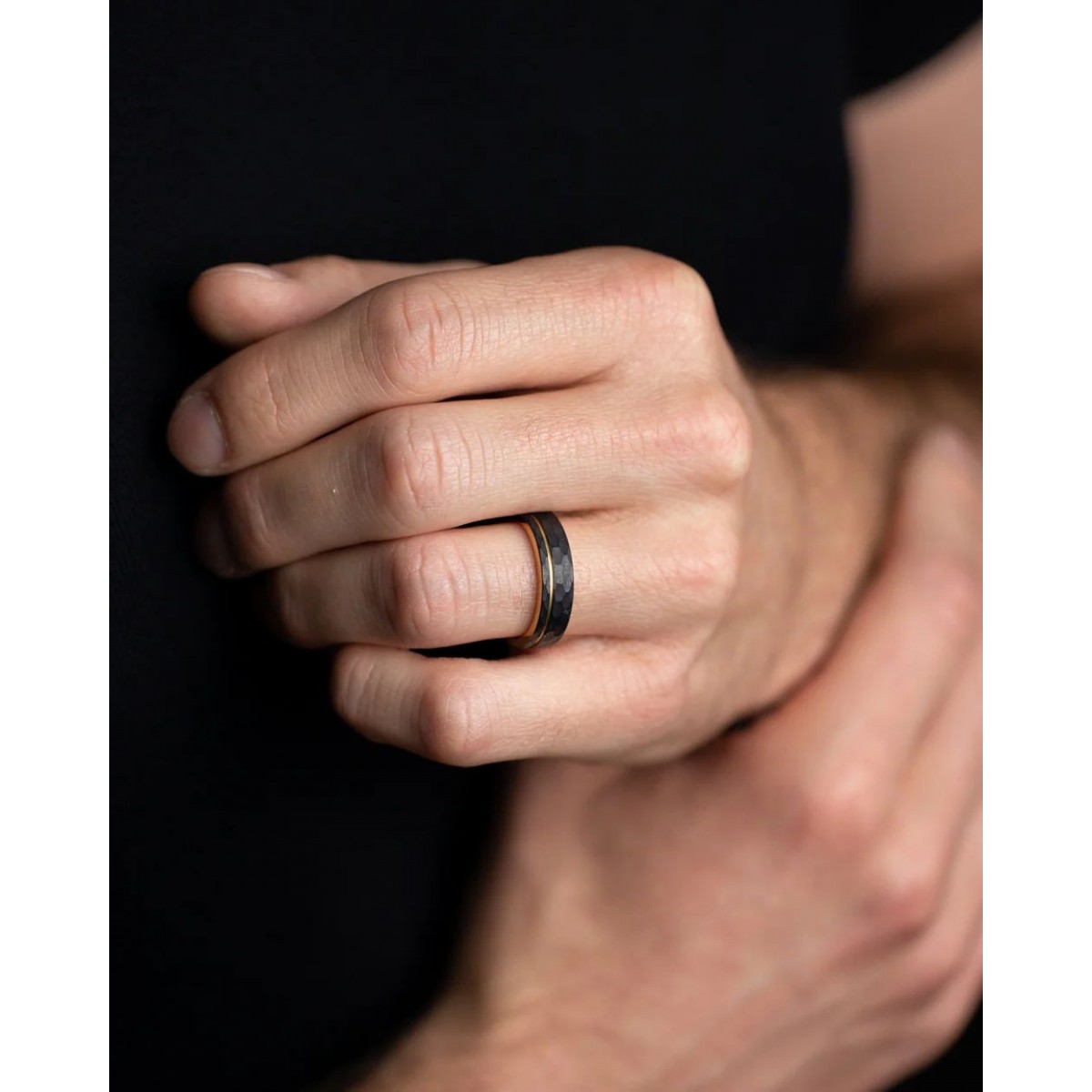 La bague Alter Gold est entièrement réalisée en titane. Il mesure 6mm de diamètre et il a une finition facettée à l'extérieur.
