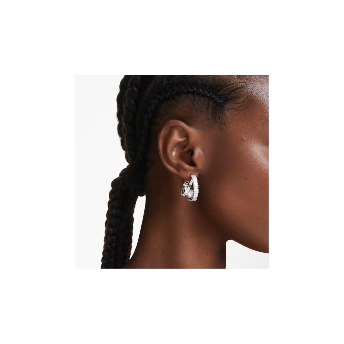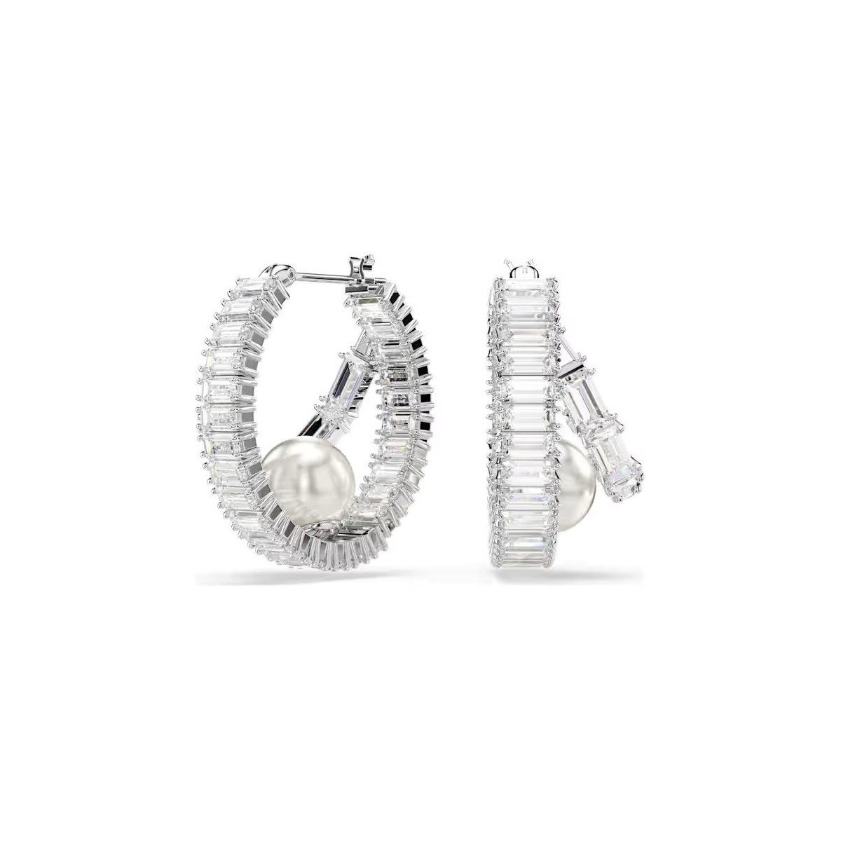 Apportez une touche moderne aux créoles classiques. Ces boucles d'oreilles percées lumineuses sont réalisées en métal rhodié et entièrement serties de Swarovski Zirconia taille baguette. Une unique Crystal Pearl de Swarovski est ensuite disposée à la base de chaque créole pour ajouter une touche de luxe ultime. Associez ces boucles d'oreilles à d'autres bijoux assortis pour créer vos propres combinaisons expressives.