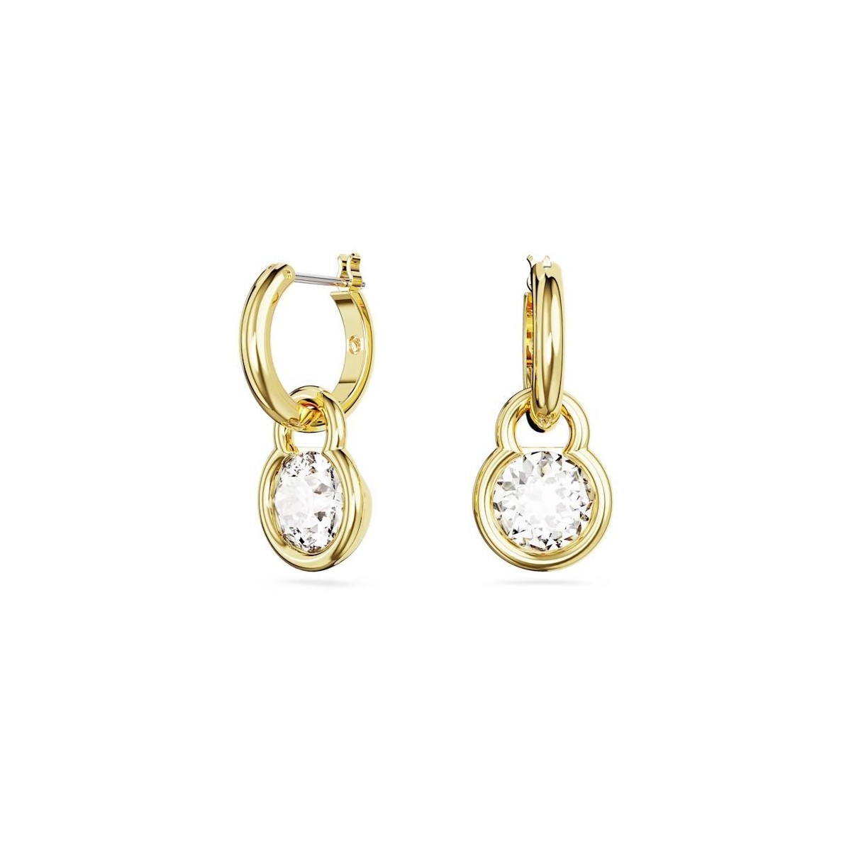 Ces boucles d'oreilles Dextera ont été pensées pour faire tourner les têtes. Chaque pièce en placage de ton or est ornée d'une pierre ronde sertie en chaton, reliée à des mini-créoles qui captent la lumière de toutes leurs facettes. Un moyen simple mais audacieux d'habiller votre style de cristal.