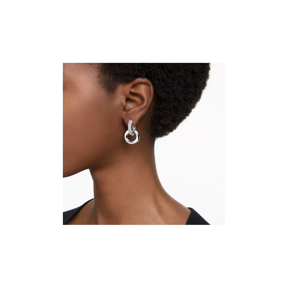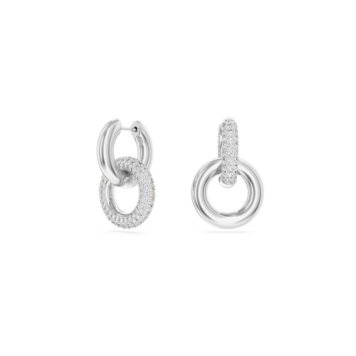 Ces créoles entrelacées Dextera sont dotées de deux anneaux tubulaires en métal rhodié, dont l'une est intégralement pavée. Pour ajouter une touche asymétrique, le positionnement des anneaux est différent sur chaque pièce, vous pouvez alors détacher à l'envie le deuxième anneau pour créer un style différent avec une seule créole.