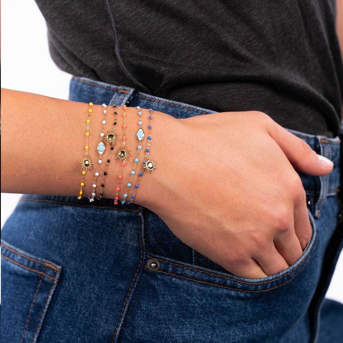 Gigi Clozeau propose des bijoux élaborés à partir de matières de qualité : or 18 carats, diamants et résine haut de gamme. La marque se dinstingue par sa riche palette de couleurs qui répondra à toutes les envies et rendra votre bijou unique.