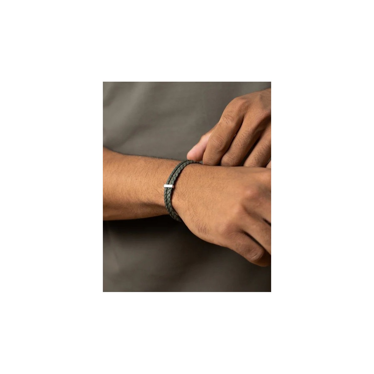 Le bracelet Duo Green est entièrement fabriqué en cuir nappa italien de haute qualité et en acier inoxydable argenté poli. Le cuir italien est incroyablement lisse et doux pour votre peau. Il est doté d'un élément en acier inoxydable et est disponible dans les tailles XS-S et ML.