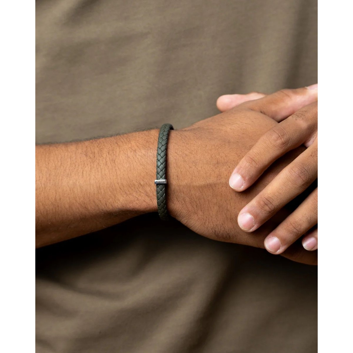 Le bracelet Una Green est entièrement réalisé en cuir nappa italien de haute qualité et en éléments en acier inoxydable argenté poli. Le cuir italien est incroyablement lisse et doux pour votre peau. Il est fini avec un élément en acier inoxydable et il est disponible dans les tailles XXS à XXL.