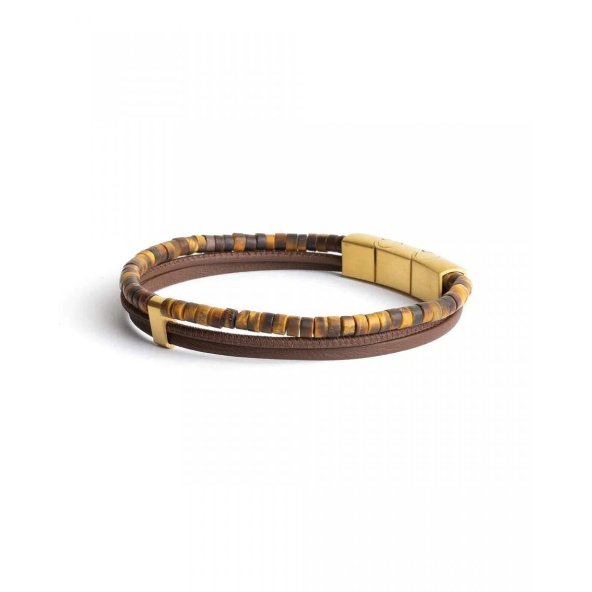 Le Triplux MarronLe bracelet de luxe est fabriqué avec du véritable cuir nappa italien et de subtiles pierres œil de tigre de 2 mm provenant d'Afrique du Sud. L'Oeil de Tigre est souvent appelé la « Pierre du Guerrier ». C'est une pierre puissante qui vous protège des influences extérieures négatives. On estime également qu'elle augmente le courage, la force et la persévérance.