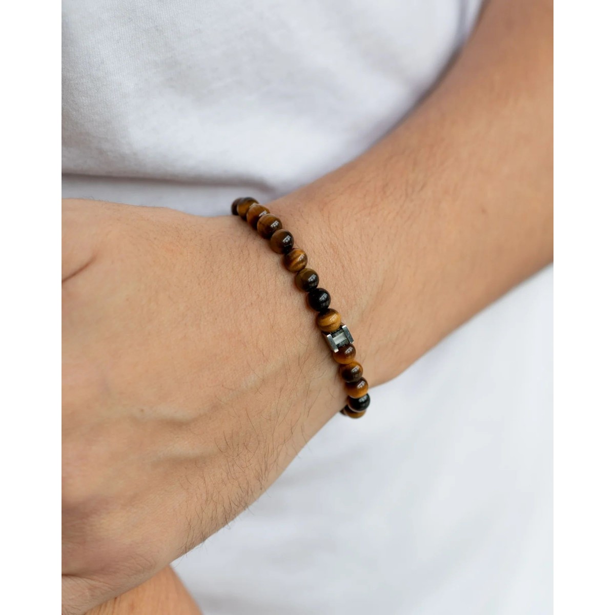 Ce bracelet est fabriqué avec d'élégantes pierres œil de tigre de 6 mm provenant d'Afrique du Sud. L'Oeil de Tigre est souvent appelé la « Pierre du Guerrier ». C'est une pierre puissante qui vous protège des influences extérieures négatives. On estime également qu'elle augmente le courage, la force et la persévérance.