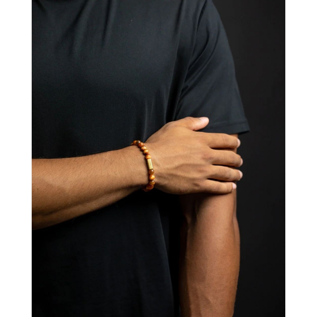 Le bracelet Feu représente l'élément Feu qui fait partie des cinq éléments de base qui composent le monde. Le feu est la chose enflammée vers le haut. Il fait chaud et monte. Il est lié à l'été, lorsque la chaleur du soleil culmine et au Sud, où le soleil est à son apogée. Le bracelet Fire est réalisé avec des pierres naturelles Oeil de Tigre de 8 mm. L'Œil de Tigre est souvent appelé la Pierre du Guerrier. C'est une pierre puissante qui vous protège des influences extérieures négatives. On pense également qu'elle renforce le courage, la force et la persévérance.