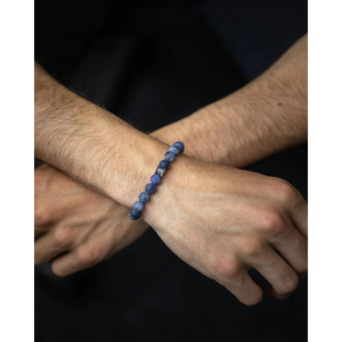 Le bracelet Alpha Mat Blue est fabriqué à partir de la pierre naturelle sodalite. Cette pierre est constituée d'un minéral assez rare connu pour sa couleur bleu à bleu violet. Parfois, il se caractérise par des veines ou des taches blanches qui traversent la pierre. En présence de cette pierre naturelle, votre confiance en vous est renforcée et votre estime de soi améliorée.