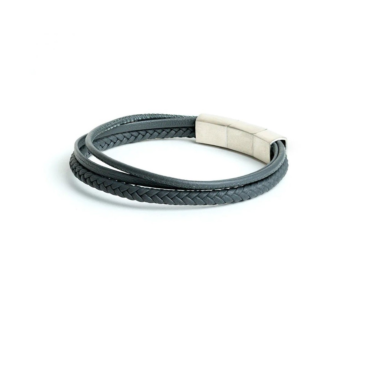 Le bracelet Arte Grey est entièrement fabriqué avec du cuir nappa italien de haute qualité et des éléments en acier inoxydable argenté poli. Le cuir italien est incroyablement lisse et doux sur votre peau. Il est fini avec un élément en acier inoxydable.