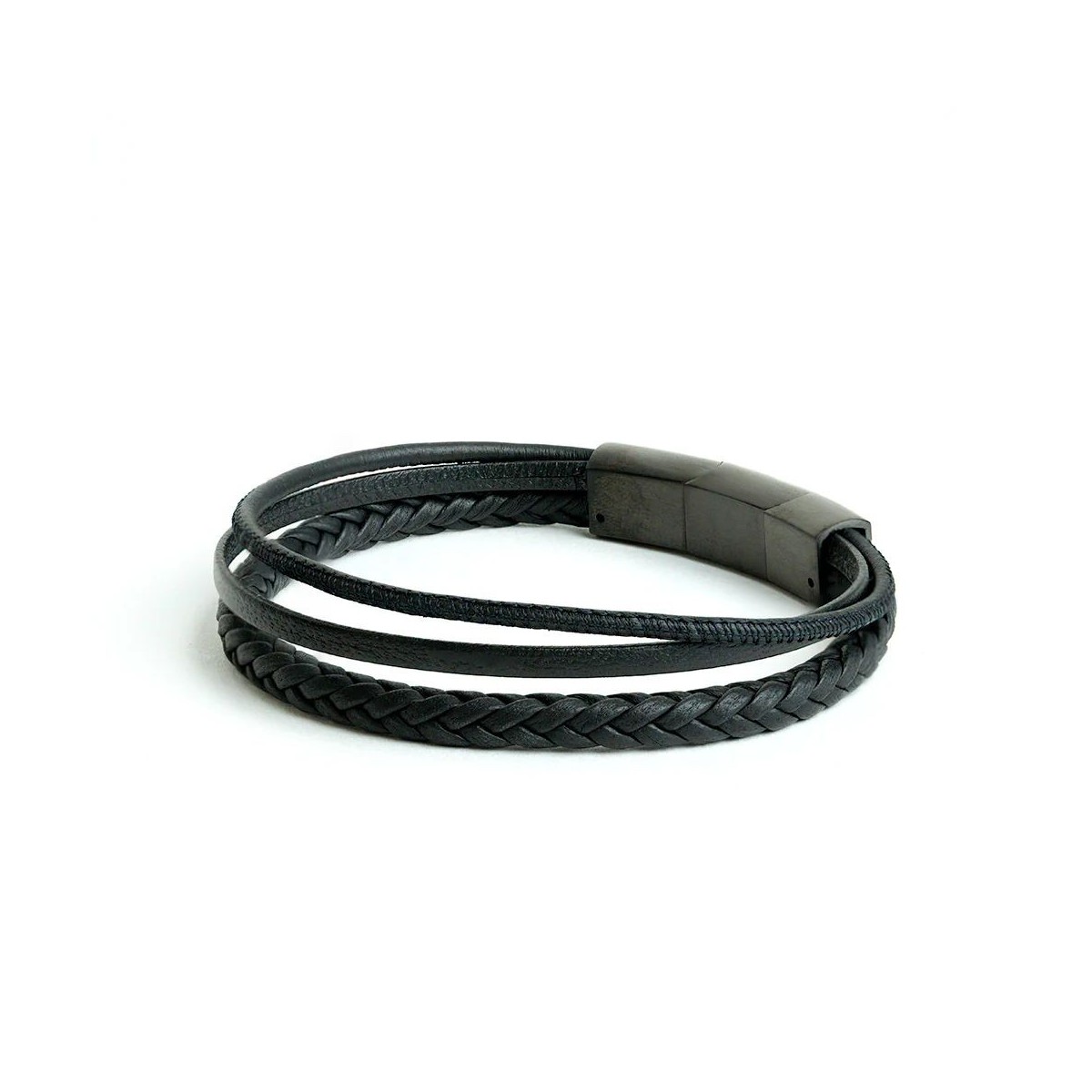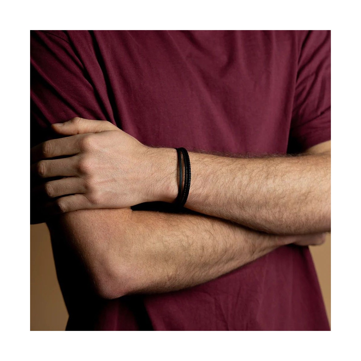 Le bracelet Arte Black est entièrement fabriqué avec du cuir nappa italien de haute qualité et des éléments en acier inoxydable argenté poli. Le cuir italien est incroyablement lisse et doux sur votre peau. Il est fini avec un élément en acier inoxydable.