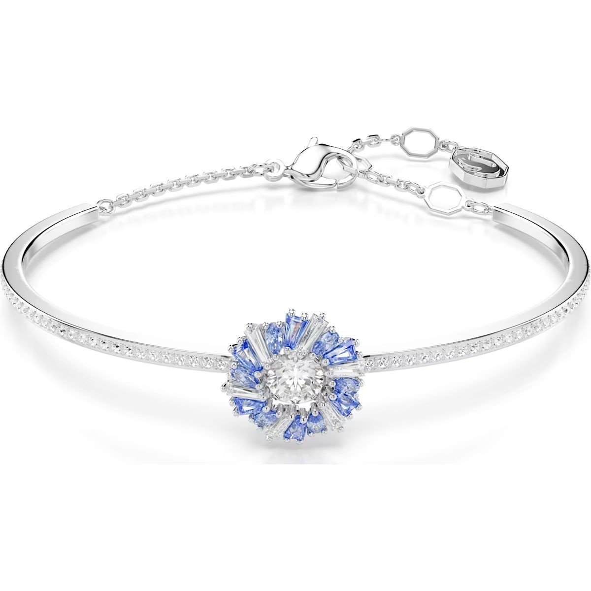 Entourez votre poignet d'une touche d'éclat subtile avec notre scintillant bracelet-jonc Idyllia. Porté sur un bracelet-jonc solide avec fermoir mousqueton, cette pièce en métal rhodié affiche une fleur scintillante soigneusement conçue avec des Swarovski Zirconia dans des tons incolores et bleus rafraîchissants. Une lumineuse Dancing Stone au centre vient quant à elle saisir la lumière sous tous les angles. Associez ce bracelet-jonc à nos boucles d'oreilles assorties pour un style complet, harmonieux et lumineux.