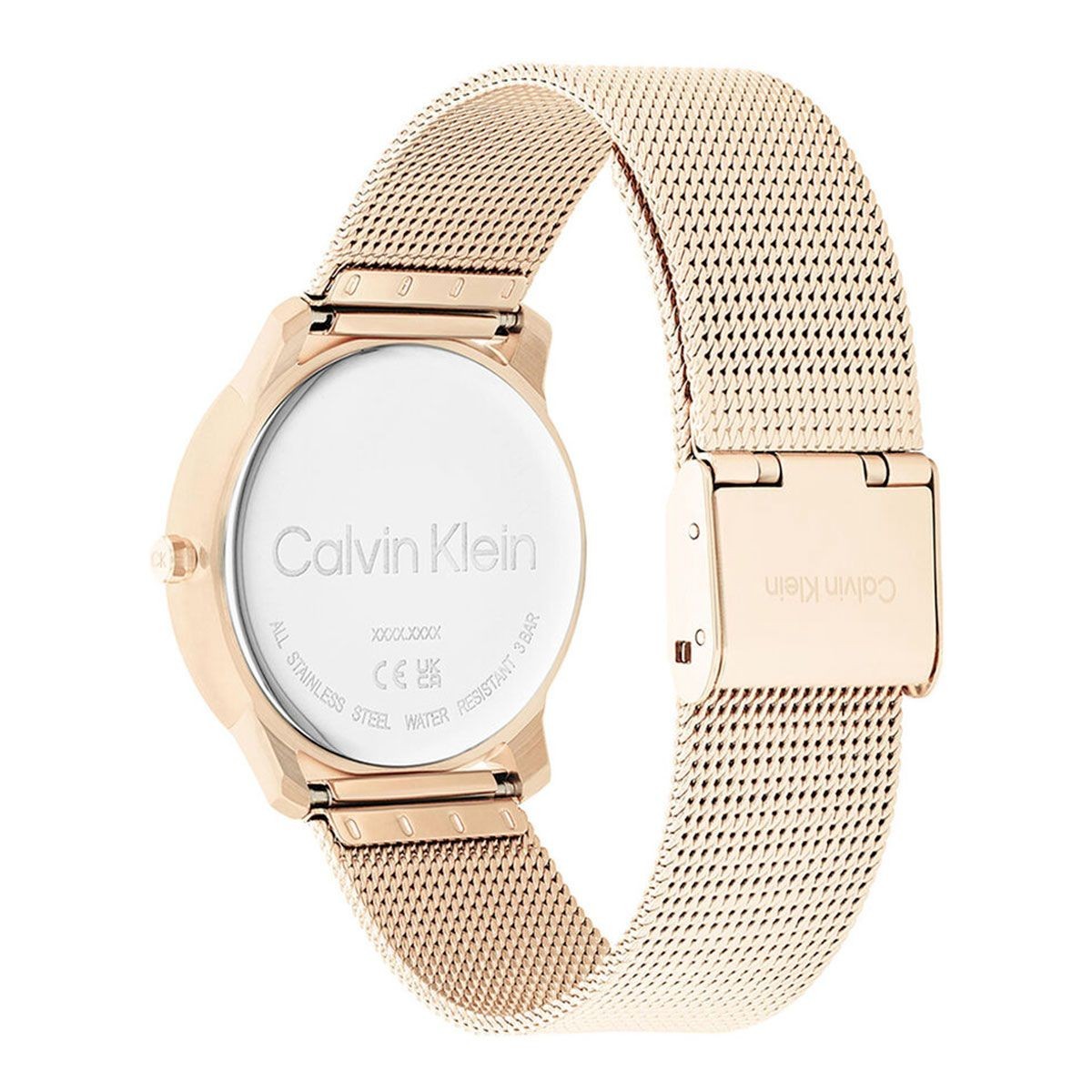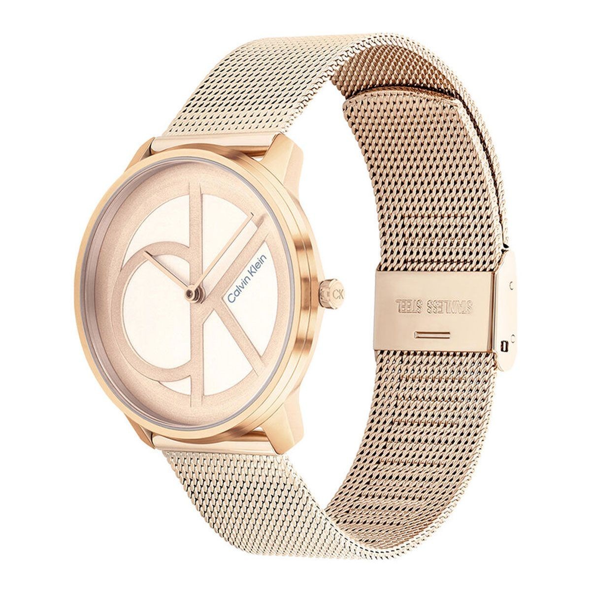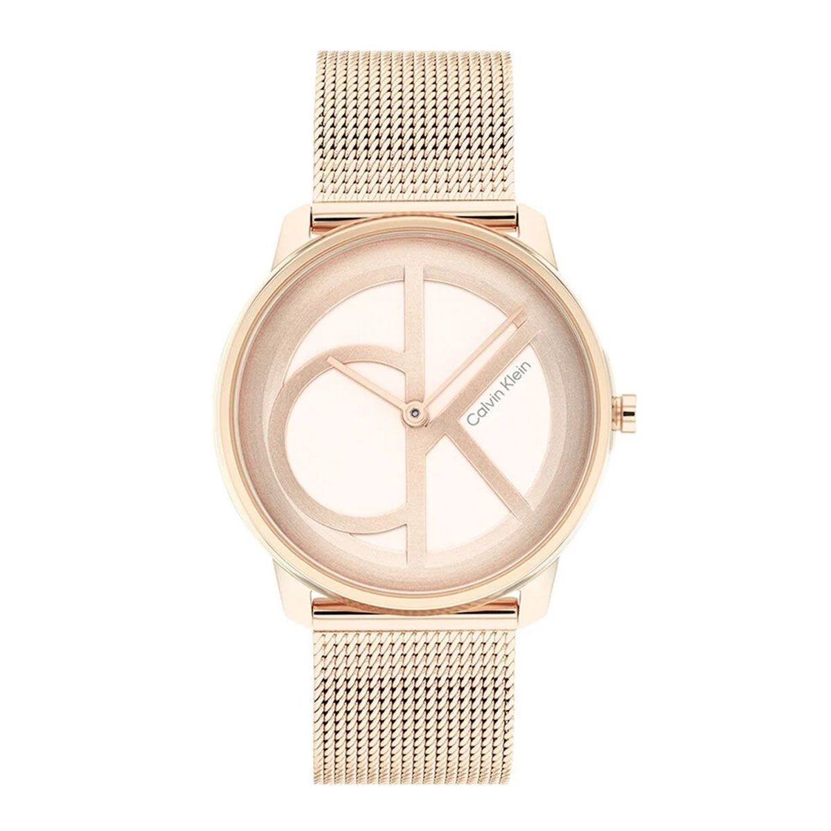 La montre Iconic Mesh se revêt d'un superbe boîtier en acier doré rose, le cadran arbore les célèbres initiales de la maison et le bracelet en acier doré rose à la finition maille milanaise