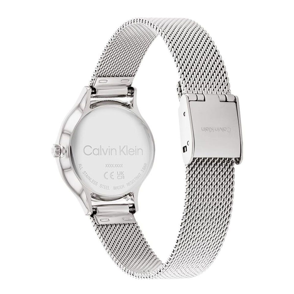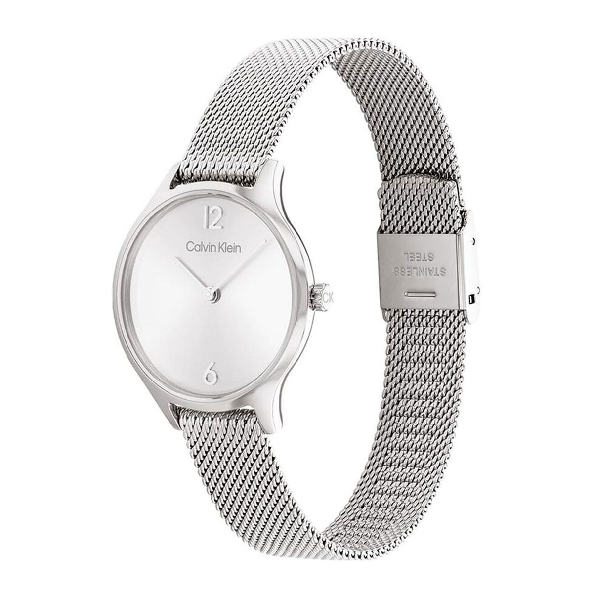 La montre Timeless 2H en acier inoxydable se compose d'un boitier de 28 mm de diamètre, d'un cadran argenté et d'un bracelet en maille milanaise acier