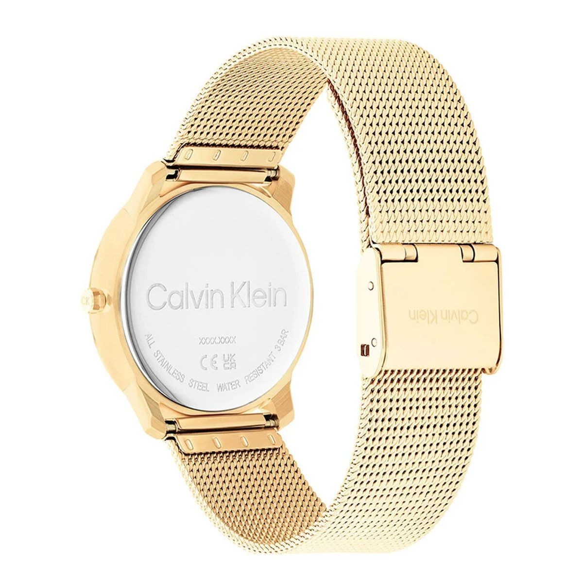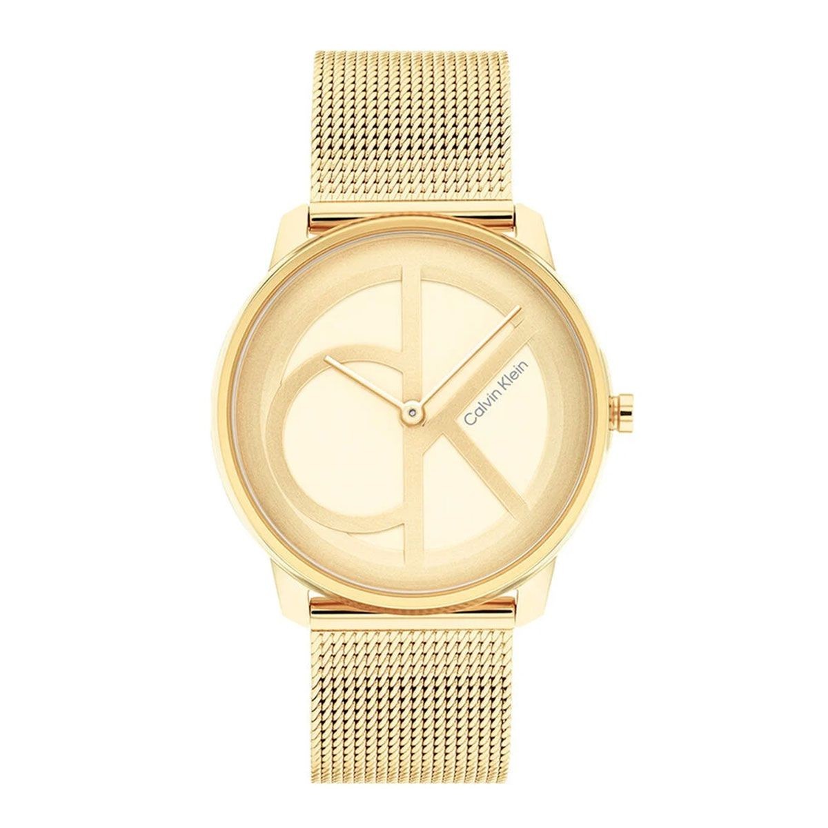 La montre Iconic Mesh se revêt d'un superbe boîtier en acier doré, le cadran doré arbore les célèbres initiales de la maison et le bracelet en acier doré à la finition maille milanaise