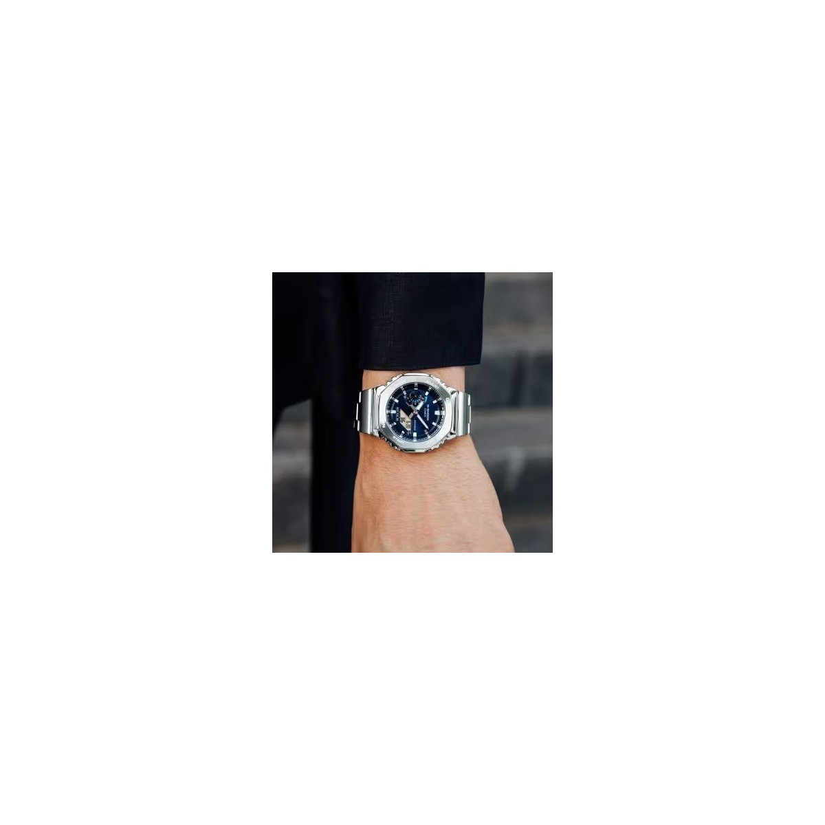 Forgée et polie avec soin, la lunette octogonale en acier inoxydable présente une texture sophistiquée, offrant un design à la fois simple, élégant et résistant. Fabriqué en résine renforcée de fibres de verre à haute rigidité, le boîtier est le plus fin de tous les modèles combinés G-SHOCK, avec un diamètre de seulement 11,8 mm.
