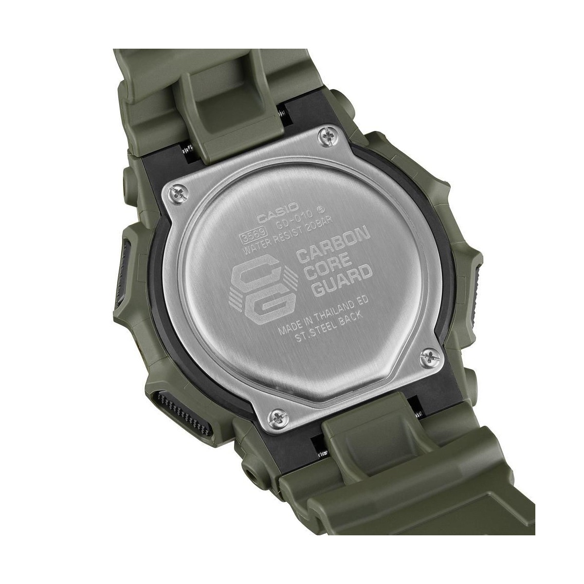 La montre numérique GD-010 offre des fonctionnalités pratiques telles que l'heure universelle et le chronomètre. Elle bénéficie également d'un éclairage LED à haute luminosité, facilement accessible depuis le grand bouton situé sur la face avant du boîtier, pour une lisibilité parfaite, même dans l'obscurité.