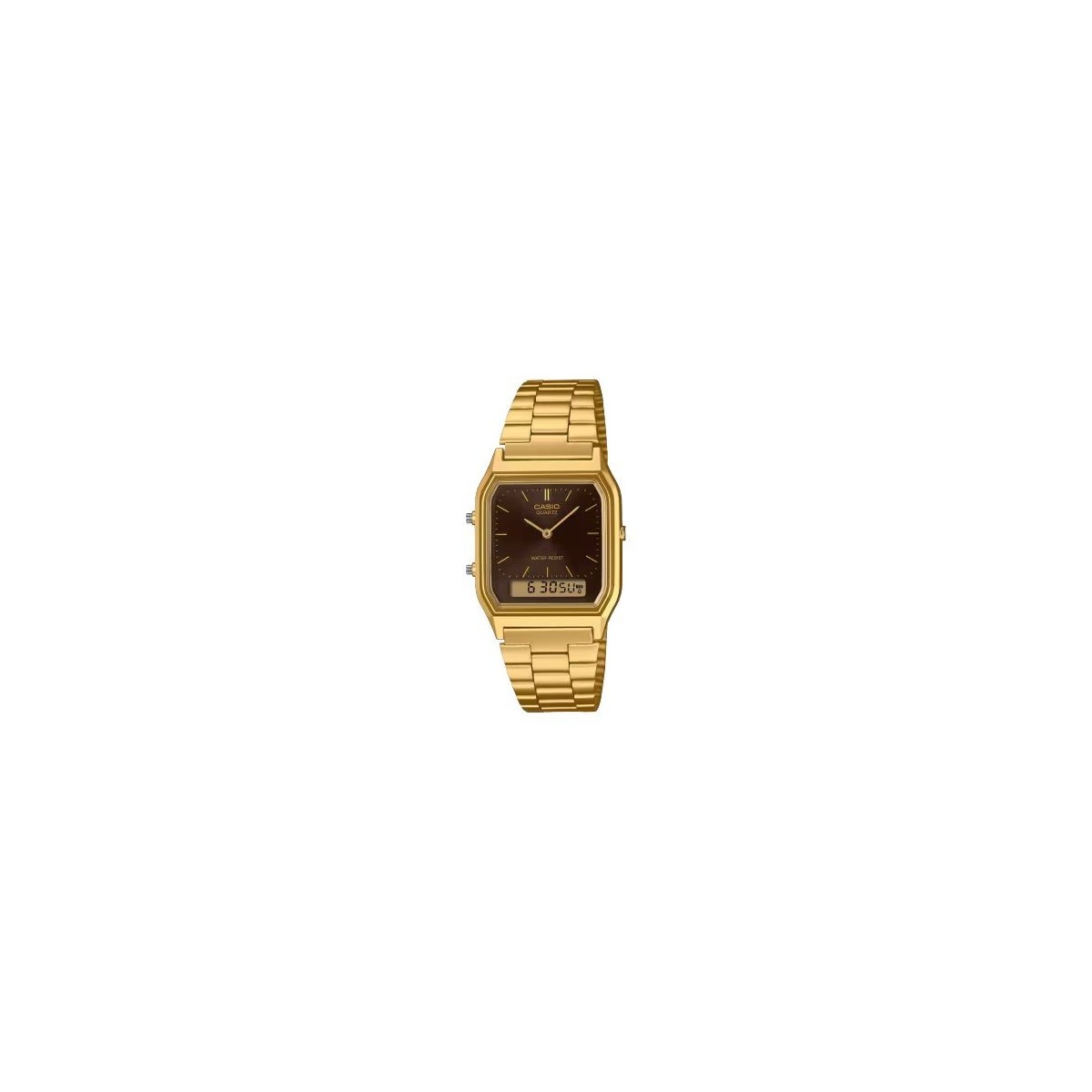 Un look vintage dans des couleurs classiques grâce à un boîtier et un bracelet doré et un cadran marron, une couleur intemporelle.