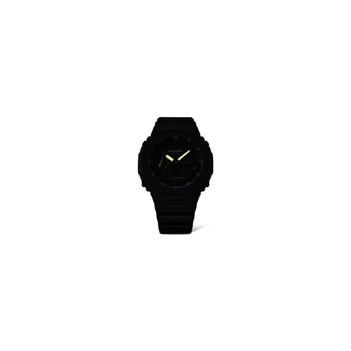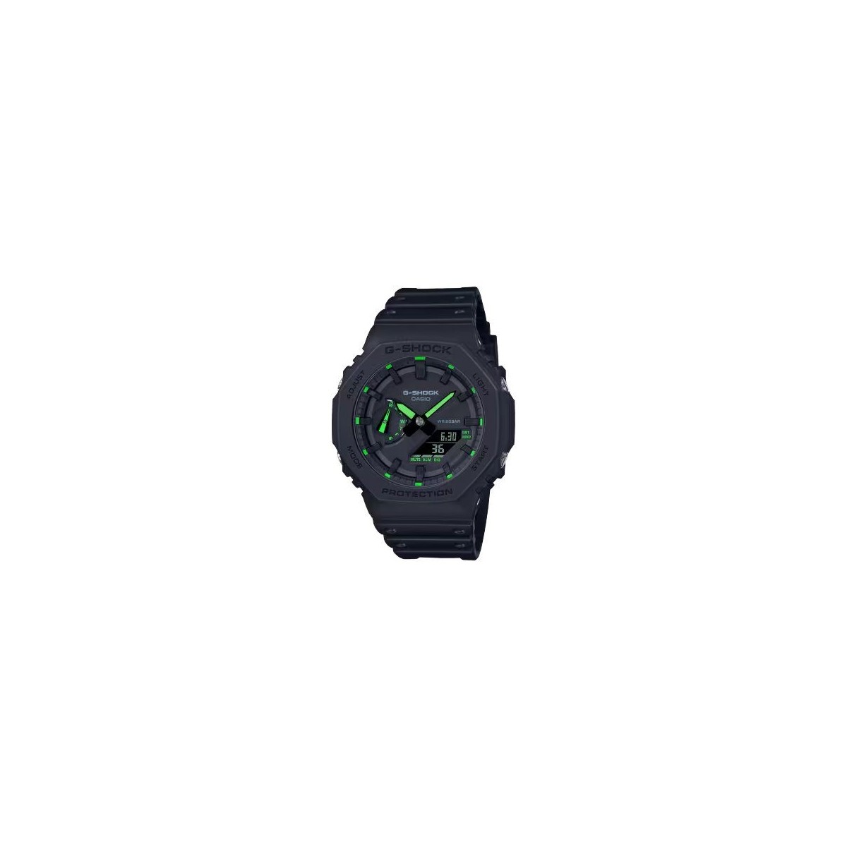 Faites-vous remarquer avec des couleurs en contraste avec le noir mat dans un design spécial aux accents néon. La forme octogonale et le design épuré de la GA-2100 arborent un noir mat texturé et une couleur néon vibrante pour un style élégant et moderne actualisé. Les aiguilles des heures et des minutes, recouvertes d'une peinture phosphorescente, restent visibles dans l'obscurité pour vous permettre de rester concentré sur vos activités, de jour comme de nuit.