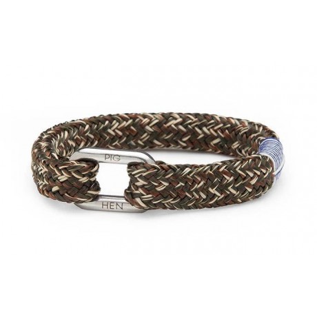 Les bracelets pour homme sont réalisés en corde de bateau avec une manille en acier inoxydable en métal argenté ou avec une finition en PVD noir. Pig & Hen innove avec des bracelets-jonc en acier inoxydable avec pour certains modèles une finition PVD noir ou doré jaune et un tissu dans divers coloris pour satisfaire tous les styles. Une collection de bijoux est réalisée avec du cuir italien dans différents coloris : bracelets en cuir marron, bracelets en cuir noir ou encore bracelets en cuir bleu. Chaque bracelet en cuir, bracelet en corde et bracelet en acier est soigneusement réalisé car pour Pig & Hen la qualité est primordiale.