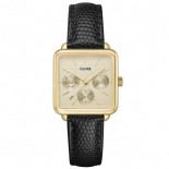 Ajoutez une touche d'élégance et de sophistication à votre garde-robe avec la montre La Tétragone Multifunction pour femmes. Elle possède un boîtier et un cadran carrés de 30 mm couleur or, un bracelet en cuir noir au motif lézard de 16 mm, ainsi que trois sous-cadrans affichant le jour. Personnalisez facilement le look de votre montre avec n'importe quel bracelet de 16 mm. Vous pouvez ajuster vous-même la taille du bracelet.