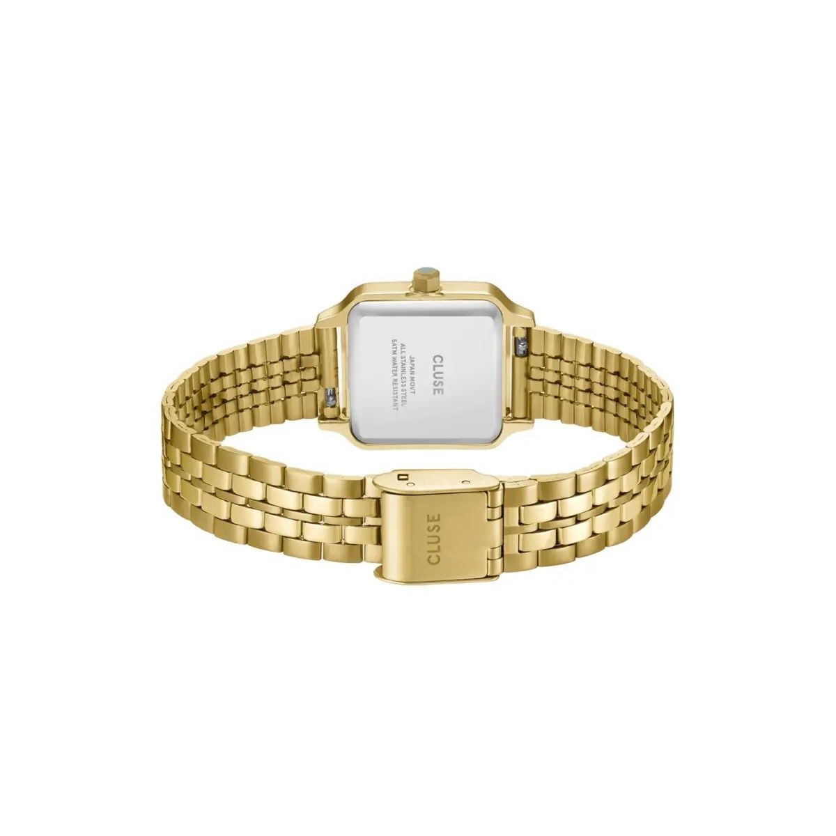 Ajoutez une touche de couleur à votre look avec la montre pour femme Gracieuse Petite vert sauge et or. Elle est dotée d'un boîtier carré doré, d'un bracelet à cinq maillons de 14 mm dont vous pouvez facilement ajuster vous-même la taille, et d'un cadran lilas givré avec couronne assortie.