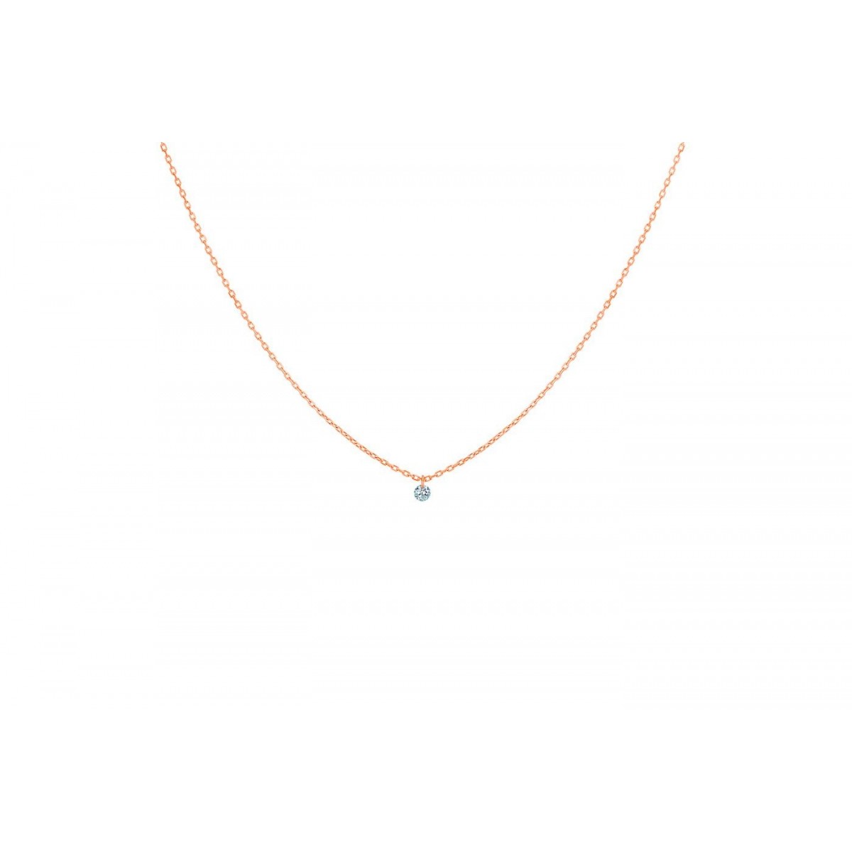 Le bijou signature LA BRUNE & LA BLONDE, le collier 360°, avec sa chaîne facettée en or rose, revisite avec élégance le classique solitaire.