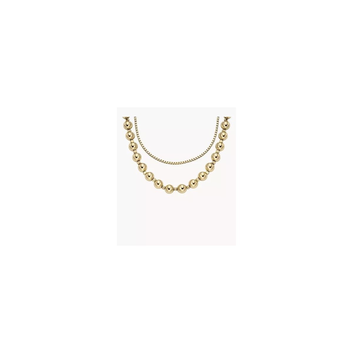 Ce collier de perles en acier inoxydable doré est doté d'un fermoir mousqueton.