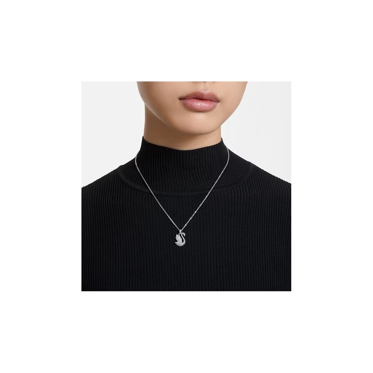 Célébrez la grâce et de la noblesse du cygne emblématique de Swarovski avec ce pendentif aux lignes élégantes et délicates. Un cygne aux ailes déployées, prêt à prendre son envol, ornementé d'un pavage de cristaux incolores scintillants montés sur du métal rhodié, qui évoque poésie et liberté.