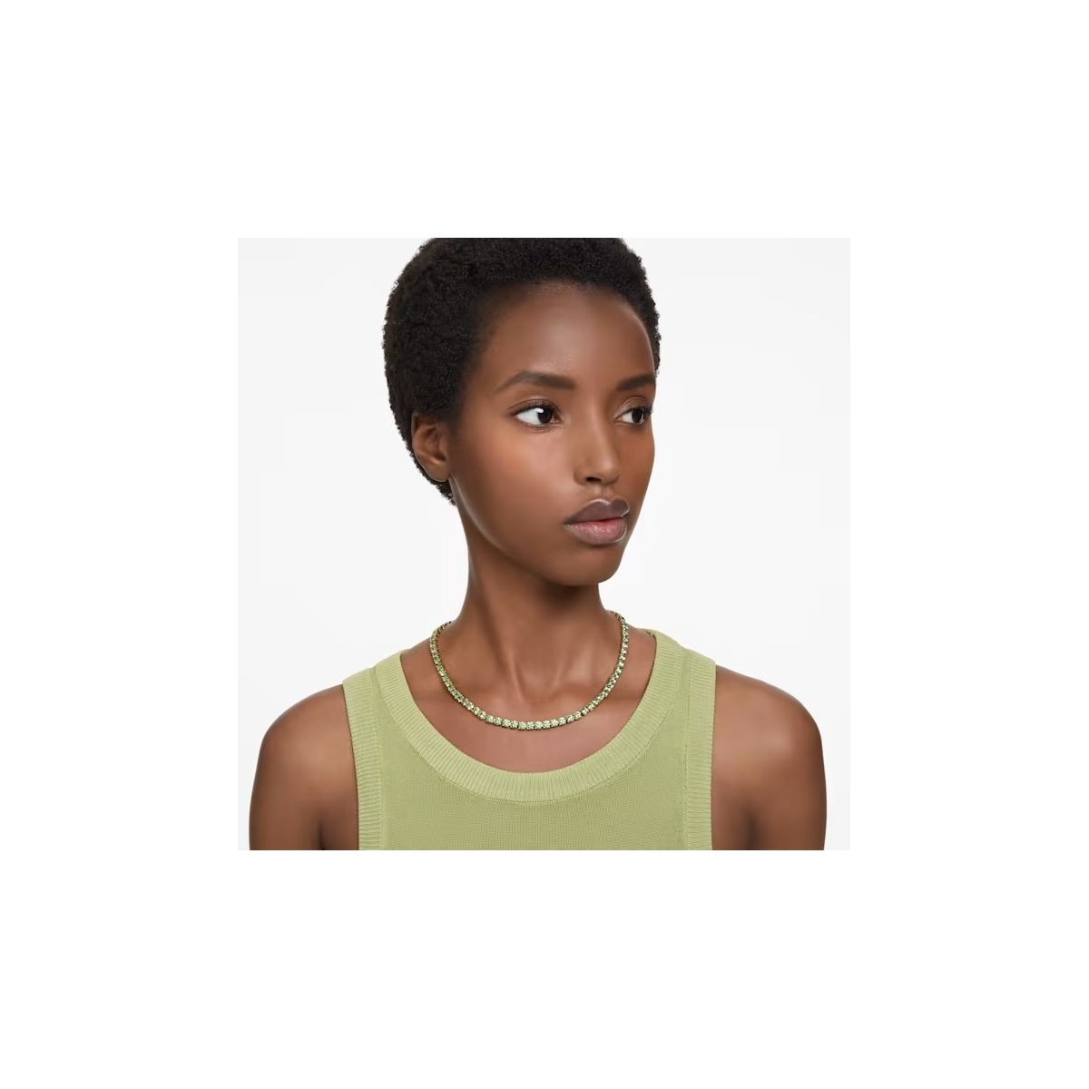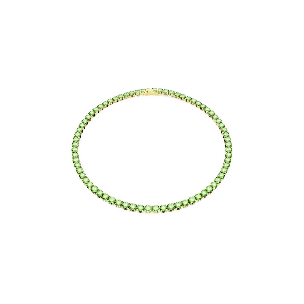 Ce collier Matrix Tennis rayonnant prend vie et lumière grâce à sa rangée colorée de pierres rondes vertes serties sur un placage de ton doré. Admirez sa silhouette fluide et sa fermeture élégante et raffinée. Une pièce versatile qui trouvera assurément sa place dans votre boîte à bijoux.