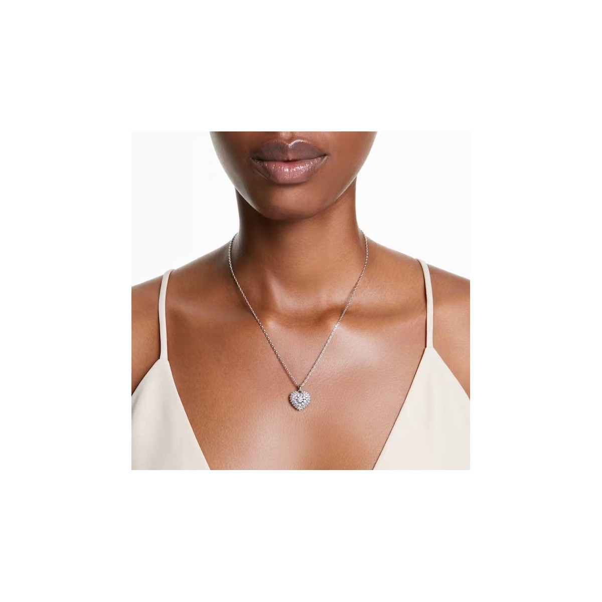 Laissez briller votre esprit romantique avec ce pendentif en forme de cœur de la famille Hyperbola. Ce bijou en métal rhodié affiche un design ajouré pour créer un maximum de volume. Pour rehausser l'effet dôme, il est orné de Swarovski Zirconia arrondis incolores sertis à l'aide de la brillante technique chatonnage. Illuminez votre look ou offrez ce pendentif à une personne que vous adorez.