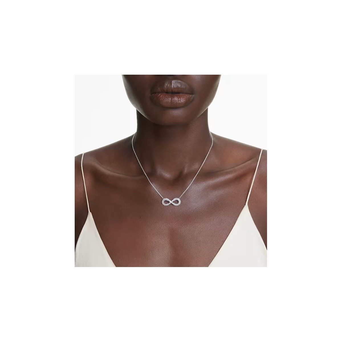 Cet étincelant pendentif Hyperbola se distingue grâce à son symbole de l'infini _ pour célébrer en cristal la beauté et l'éternité. Ce bijou en métal rhodié est suspendu à une chaîne délicate et son élégant motif est orné d'un pavé de cristaux incolores. Un unique Swarovski Zirconia vient ponctuer l'extension pour créer une touche supplémentaire de luxe et de sophistication.