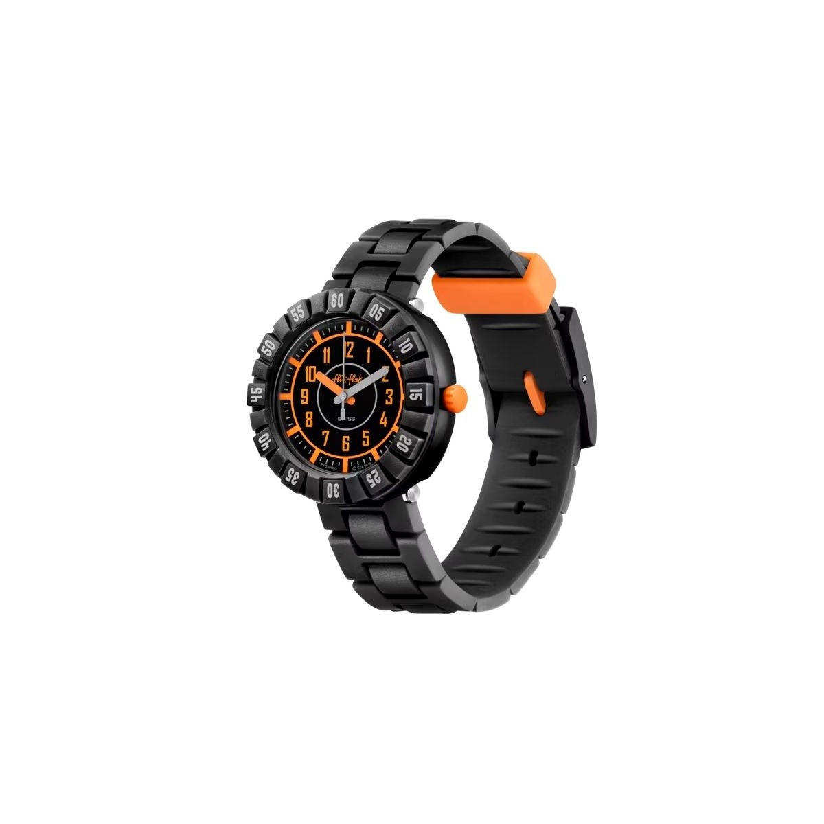 Les éclatantes touches de orange fluo qui ressortent parfaitement contre le font noir énigmatique de la CATCH U en font l'accessoire indispensable pour une virée dans le cockpit de son vaisseau spatial. Les détails fluo de son cadran ainsi que sa lunette tournante rendent l'apprentissage de la lecture de l'heure à la fois facile et amusant !