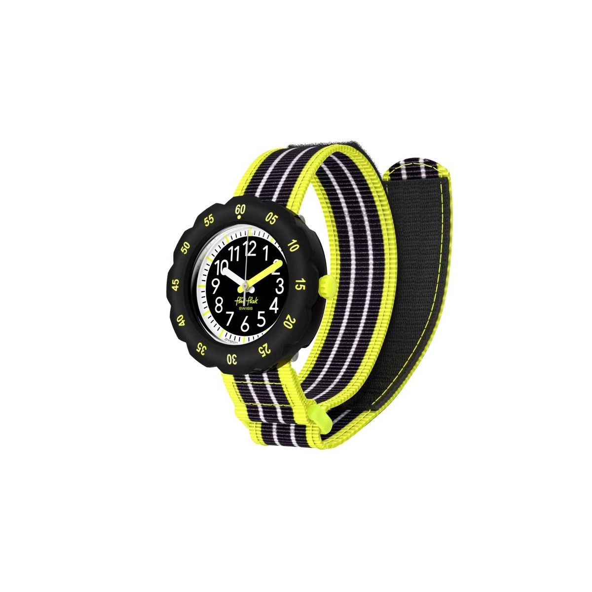 La montre pédagogique pour enfants LOOP IN NEON rst dotée d'une fermeture VELCRO® innovante sur son bracelet épuré en couleurs fluo, noir et blanc. Le cadeau parfait pour apprendre aux enfants à lire l'heure.