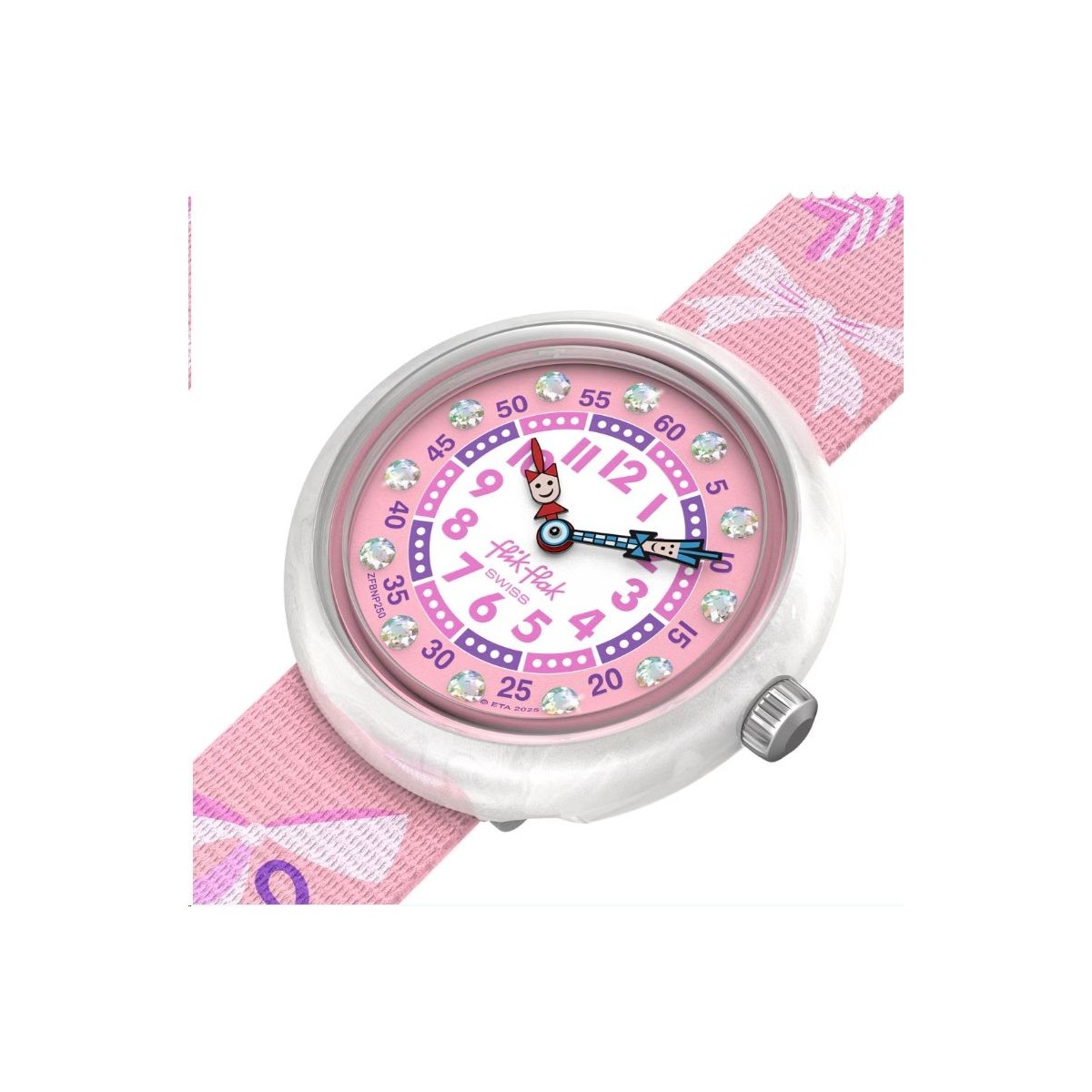 De charmants nœuds ornent le bracelet de la montre pédagogique pour enfants PICK A BOW. Avec ses cristaux scintillants et son boîtier ivoire étincelant effet nacré, c'est le cadeau idéal pour aider les jeunes artistes à apprendre à lire l'heure avec style.