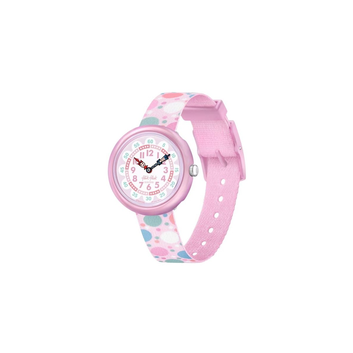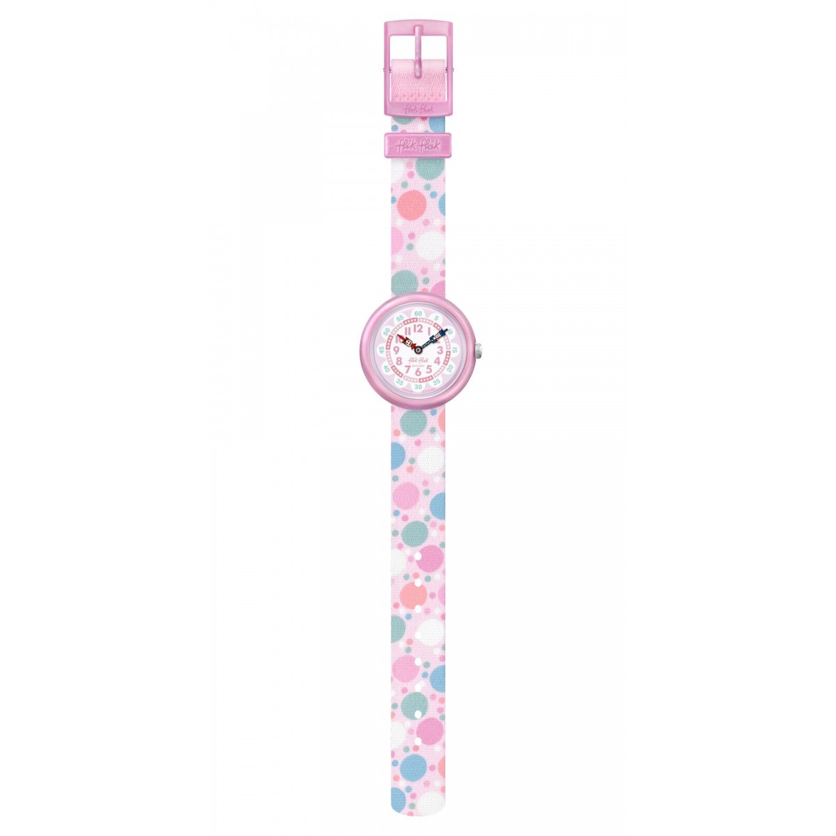 La montre pédagogique pour enfant FLYING BUBBLES est une fête à elle seule ! Ballons colorés et confettis décorent son bracelet pour leur apprendre à lire l'heure en s'amusant.