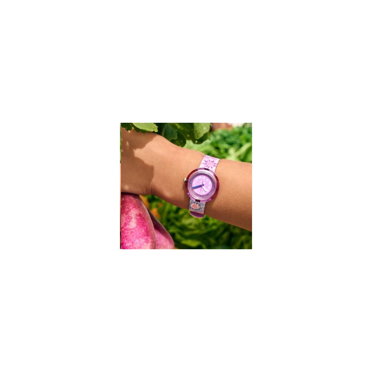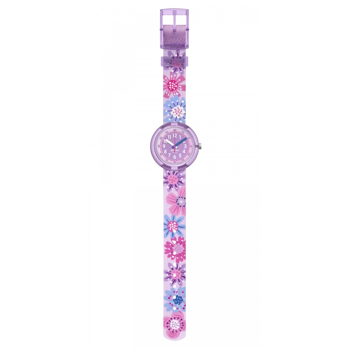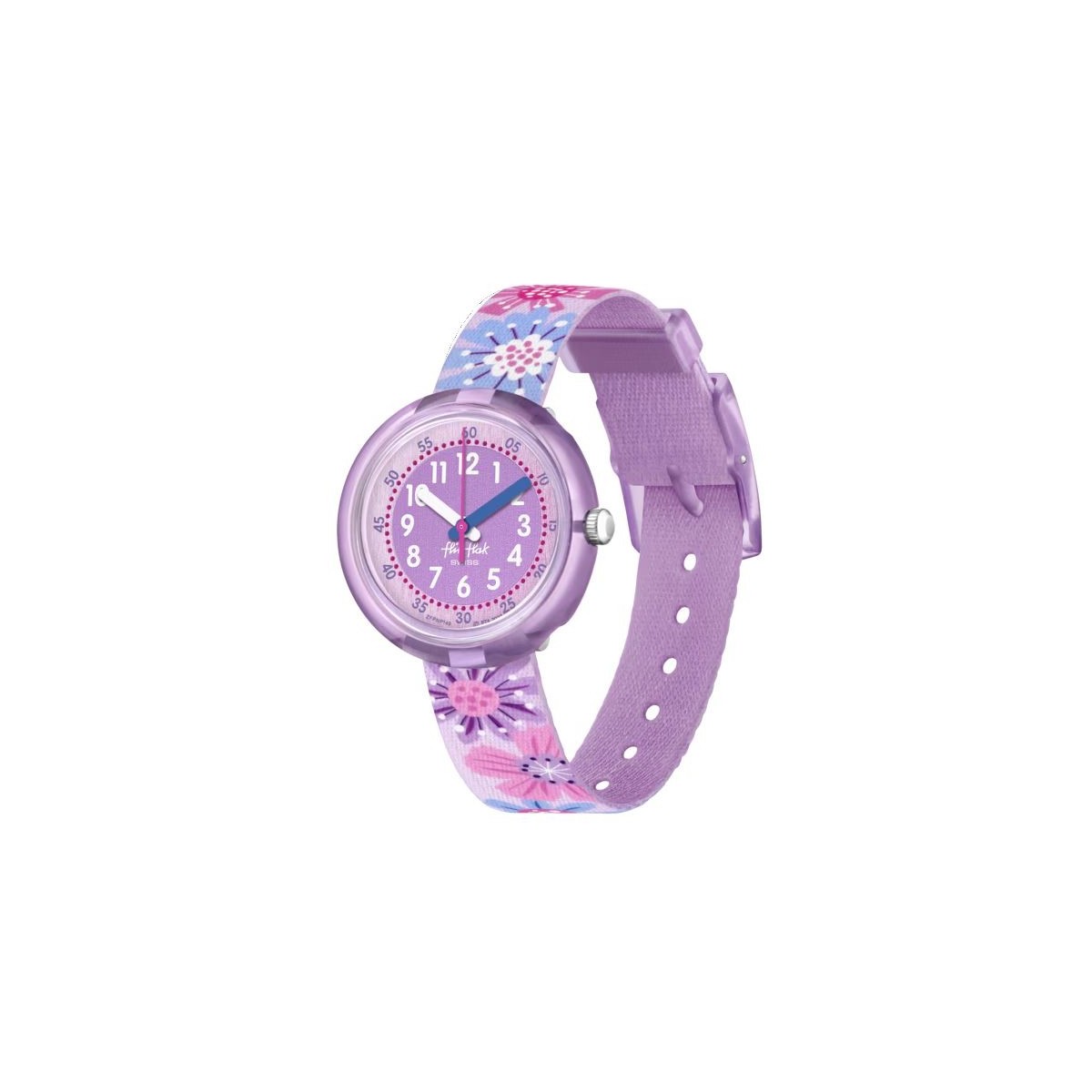 Entrez dans un monde où l'on apprend à lire l'heure en s'amusant avec FLOWER CHAOS. L'explosion de couleurs et de fleurs bleues, roses et violettes de cette montre pédagogique pour enfant en fait un superbe cadeau !