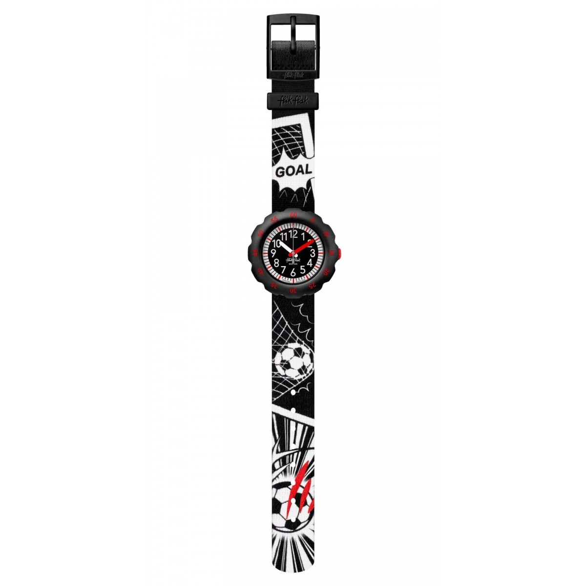 BUT ! En rouge, blanc et noir, cette montre éducative sur le thème du foot est idéale pour apprendre aux enfants passionnés de sport à lire l'heure.
