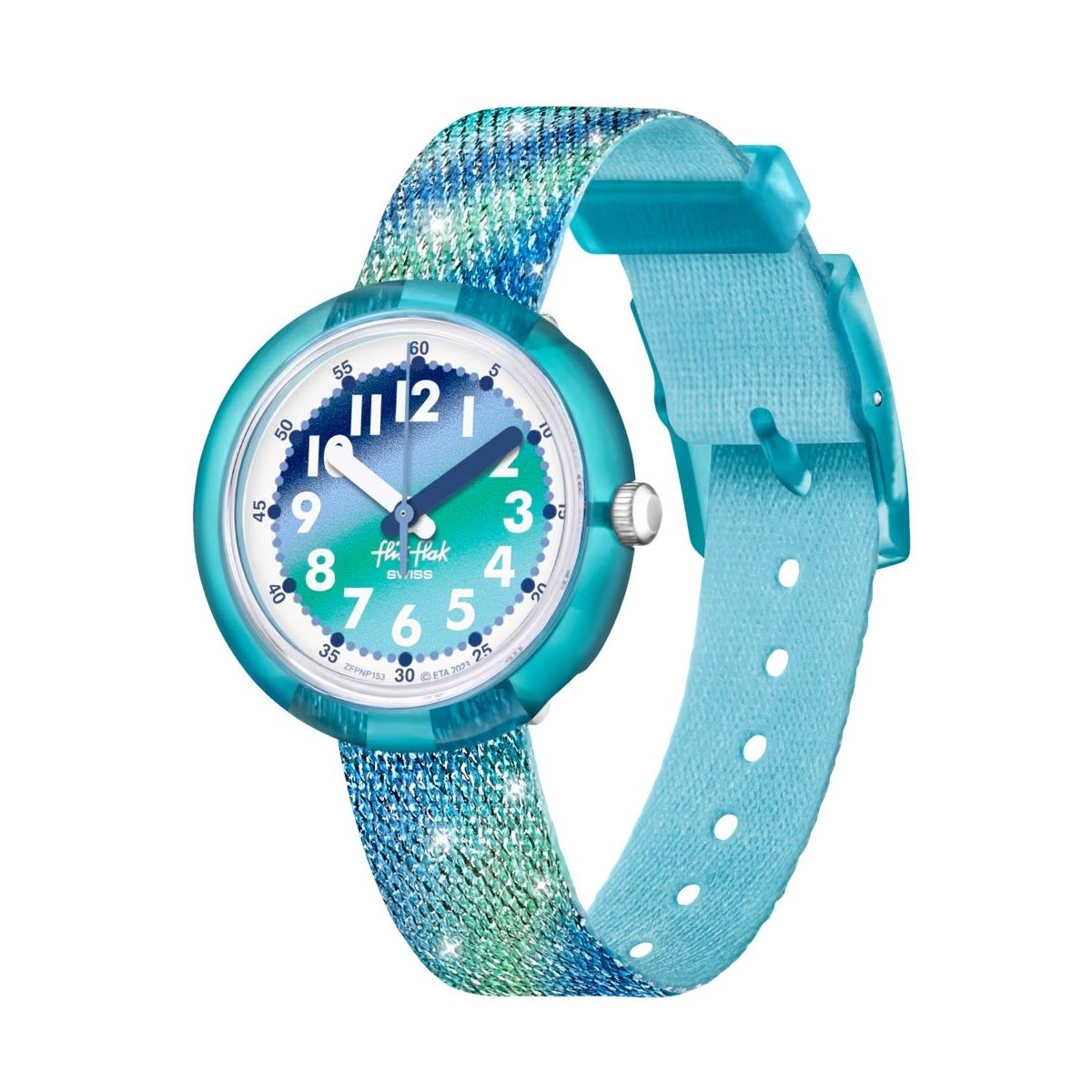 Un délice pour les yeux ! Offrez FROZEN RAINBOW, la montre pédagogique pour enfant aux motifs scintillants verts et bleus. Le cadeau parfait pour apprendre à lire l'heure !