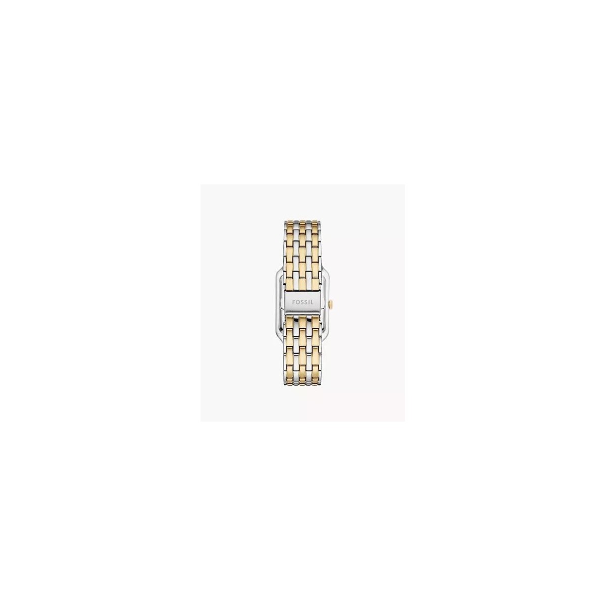 Véritable icône issue de nos archives, la montre rectangulaire Raquel a été remise au goût du jour. Extra-plate et polyvalente, elle présente un cadran de montre en nacre avec un cadre interne étincelant, un mouvement à trois aiguilles avec date et un bracelet à 7 maillons poli-brillant brossé bicolore.