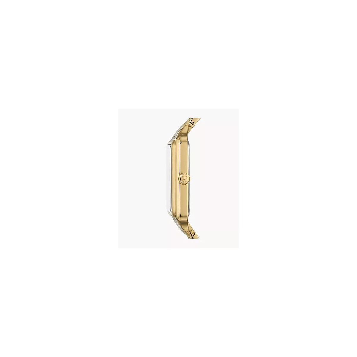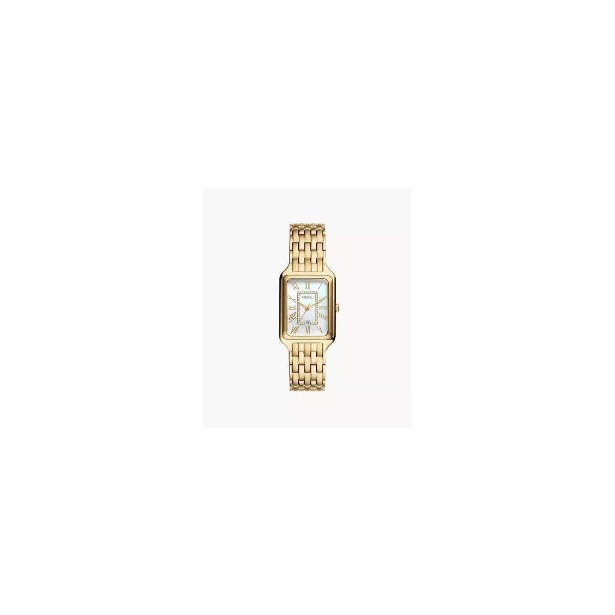 Véritable icône issue de nos archives, la montre rectangulaire Raquel a été remise au goût du jour. Extra-plate et polyvalente, elle présente un cadran de montre en nacre avec un cadre interne étincelant, un mouvement à trois aiguilles avec date et un bracelet à 7 maillons poli-brillant brossé doré.