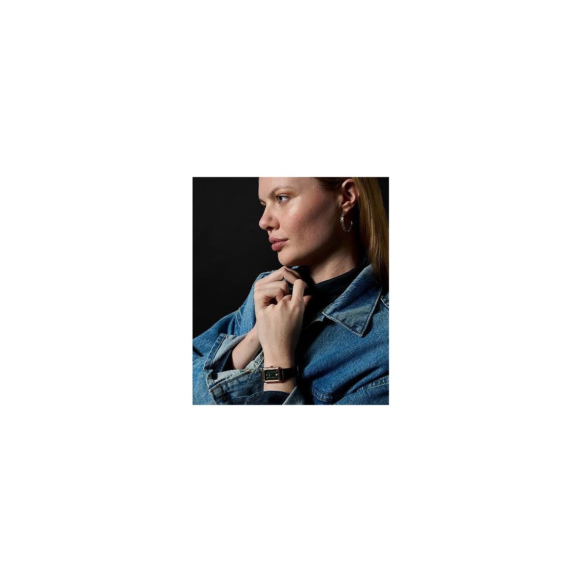 Cette montre rectangulaire Raquel, à la superbe finition, revisite l'un de nos grands classiques. Ce modèle extra-plat et polyvalent présente un cadran satiné vert avec un boîtier doré rose, un mouvement à trois aiguilles avec date et un bracelet en cuir vert. Les produits en cuir Fossil soutiennent la fabrication responsable via le Leather Working Group.