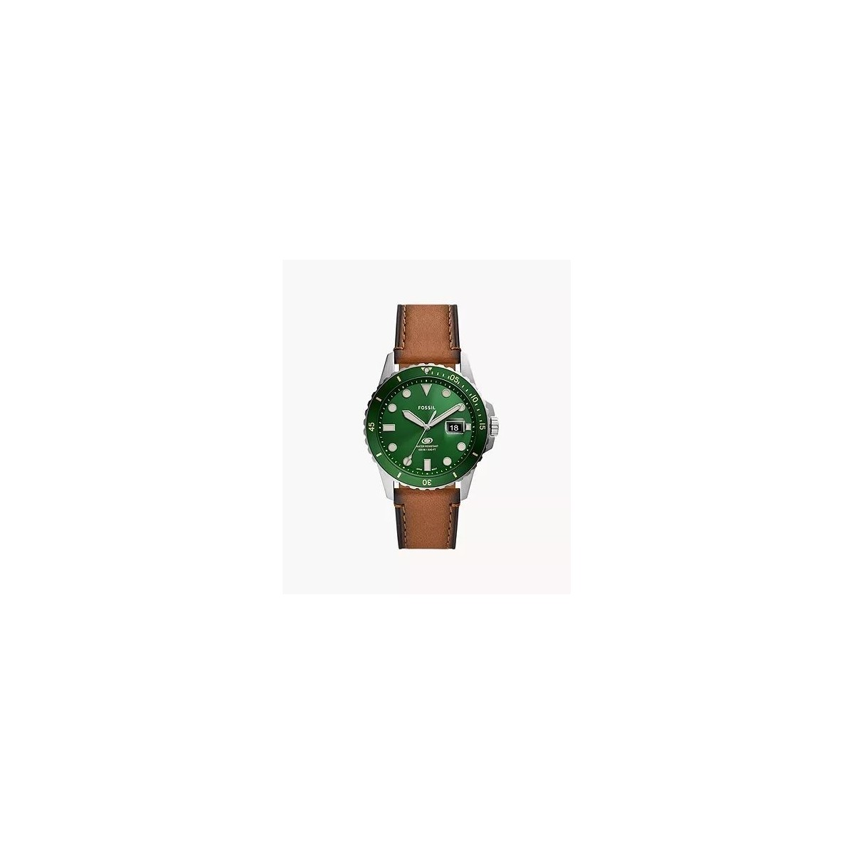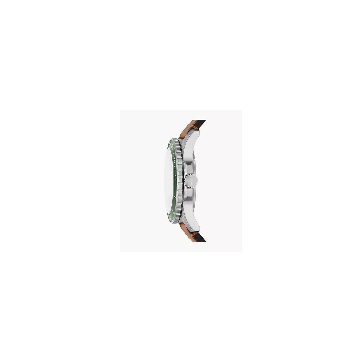 Cette montre Fossil Blue de 42 mm présente un cadran soleillé vert, un mouvement à trois aiguilles avec date et un bracelet en cuir LiteHide™ beige.