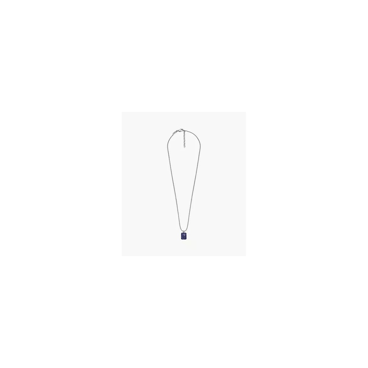 Ce collier chaîne en sodalite bleue et acier inoxydable est doté d'un fermoir mousqueton.