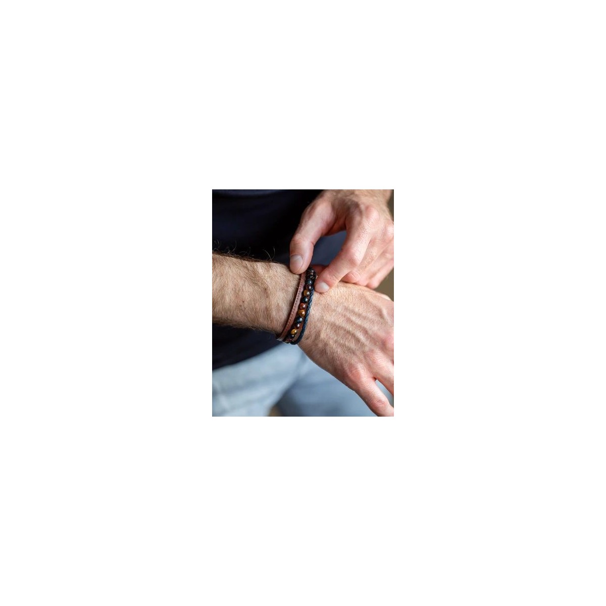 Ce bracelet est fait de cuir nappa véritable et d'élégantes pierres d'oeil de tigre de 6 mm de 3 couleurs provenant d'Afrique du Sud. L'Œil de Tigre est souvent appelé la « Pierre du Guerrier ». C'est une pierre puissante qui vous protège des influences extérieures négatives. On pense également qu'il augmente le courage, la force et la persévérance. .