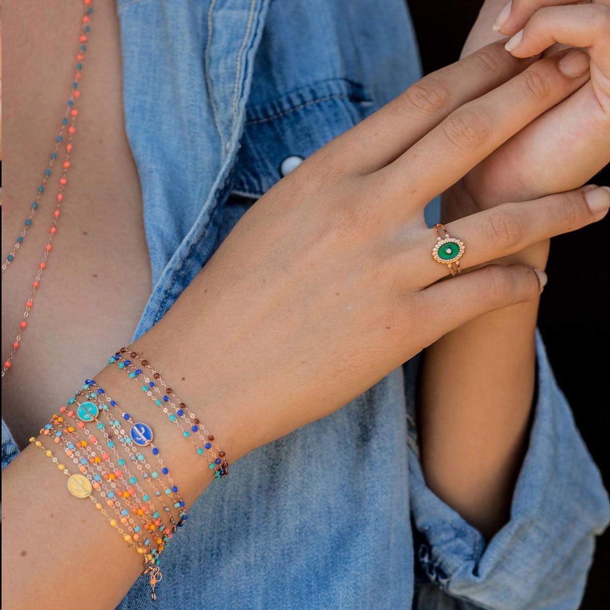 La collection classique gigi incarne toute la spontanéité et l'espérance que la vie offre. L'assortiment de classique gigi célèbre la vie, les couleurs et vous. Bracelet gigi CLOZEAU or 18 carats et perles de résine.