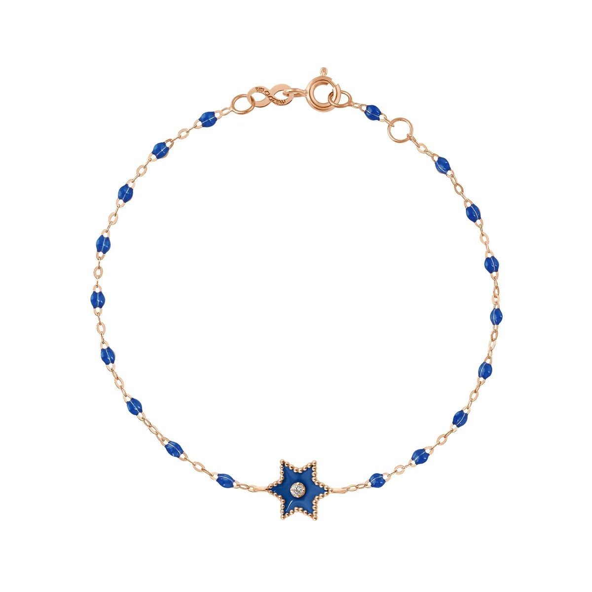 L'étoile star gigi, la lune, la clé, l'étoile de David... voici les trésors de la collection "pirate". Des bijoux découverts dans le coffre-fort d'un navire. Bracelet noir star sur chaîne gigi Classique Gigi CLOZEAU, or rose 18 carats et 1 diamant. Perles de résine.