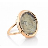 La singulière pyrite se dévoile sous l'iconique forme Disc à travers cette bague Ginette NY en or rose.