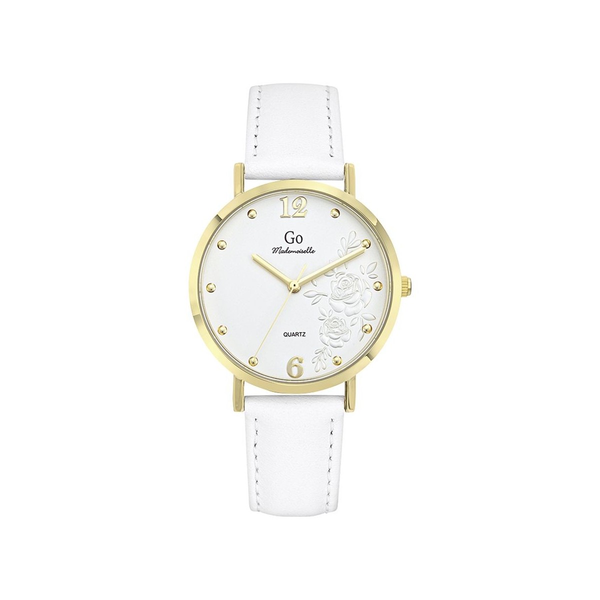 Un brin de candeur et un soupçon d'audace pour cette ravissante création 699600 de notre collection de montres GO Mademoiselle FLEURS ET PAPILLONS. Elle saura vous émerveiller par la beauté naturelle de son cadran Blanc orné de ravissants motifs. Elle est l'accord délicat entre un boitier aux courbes équilibrées en Métal-Doré et un magnifique bracelet Blanc.