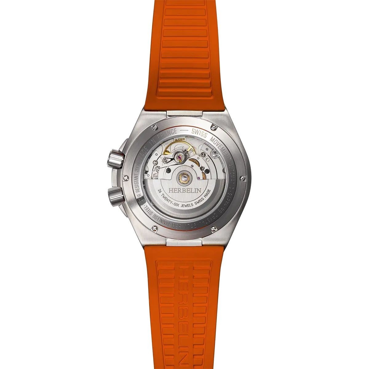 Le boîtier en acier inoxydable de 42 mm, se distingue par un design géométrique et facetté. Le fini poli brossé, renforce cette esthétique robuste, solide et moderne à la fois et met en valeur l'esthétique de cette montre pour homme. La lunette fixe, ornée de six vis décoratives alignées avec les index, adoucit le design at apporte une touche d'élégance subtile. Techniquement avancée, cette montre dispose de nombreux atouts pour les plongeurs. Le rehaut de plongée interne tournant bidirectionnel, réglable par une couronne vissée, est marqué d'un indicateur luminescent pour faciliter le calcul du temps de plongée. Les "15 premières minutes" sont accentuées par une couleur orange vibrant pour une lisibilité optimale. Les couronnes vissées garantissent une étanchéité jusqu'à 200 mètres, et empêchent tout dysfonctionnement dû à un coup de palme. Les aiguilles et index, revêtus de matière luminescente, assurent une visibilité parfaite même dans l'obscurité des fonds marins. La trotteuse, également orange vibrant et en perpétuel mouvement, indique de manière continue le bon fonctionnement de la montre. Le bracelet en élastomère FKM, garanti 10 ans, est conçu pour offrir un confort et une souplesse maximale. Ergonomique et équipé d'une boucle traditionnelle, il s'ajuste aussi bien sur une combinaison de plongée que sur une tenue de ville. Le boîtier et le mouvement de la montre sont quant à eux garantis 3 ans. En alliant tradition horlogère et innovation, la CAP CAMARAT Diver Automatique Acier est la montre idéale pour les aventuriers modernes et les amoureux de plongée sous-marine.